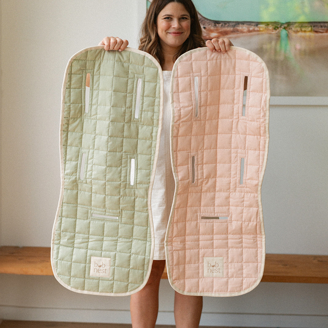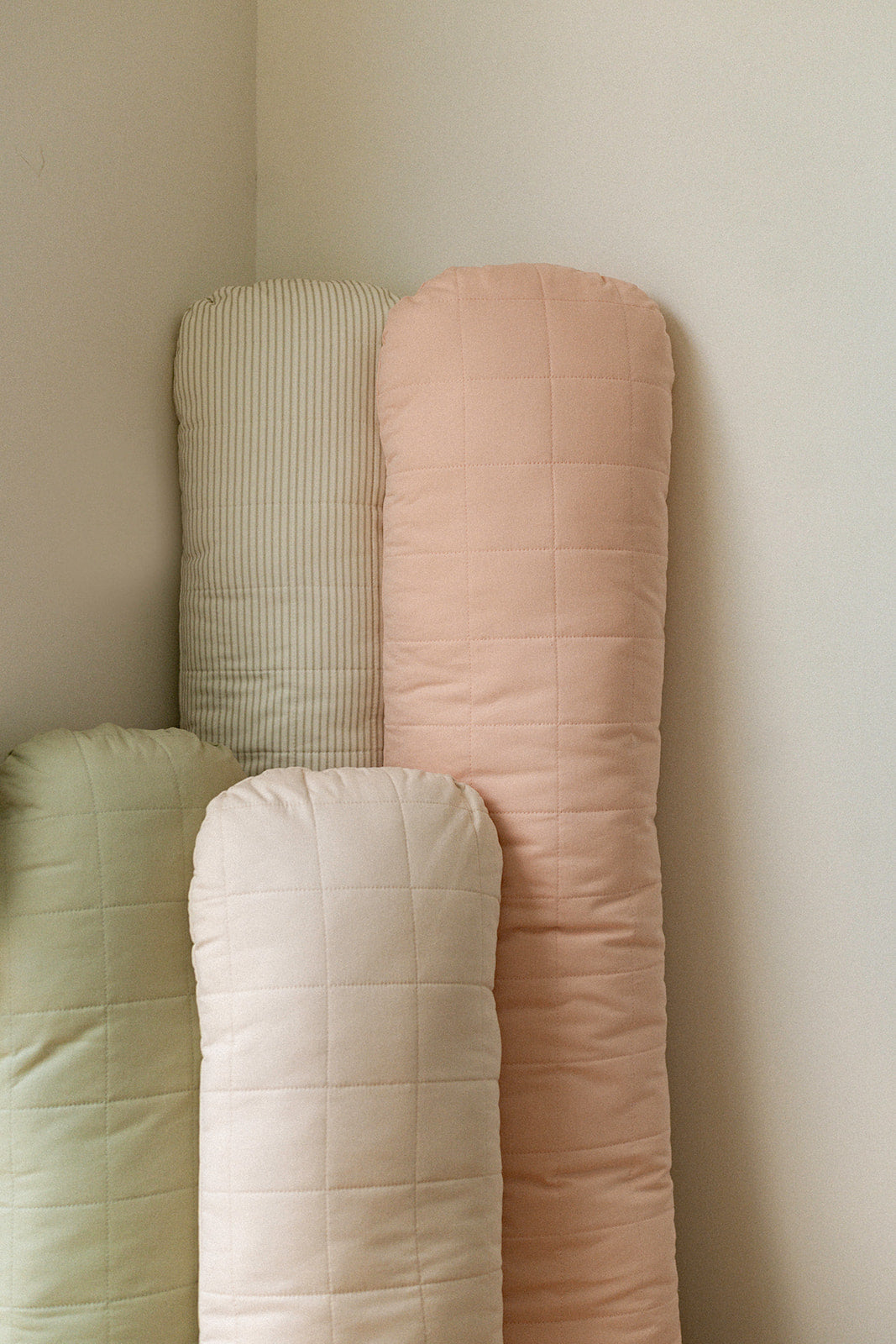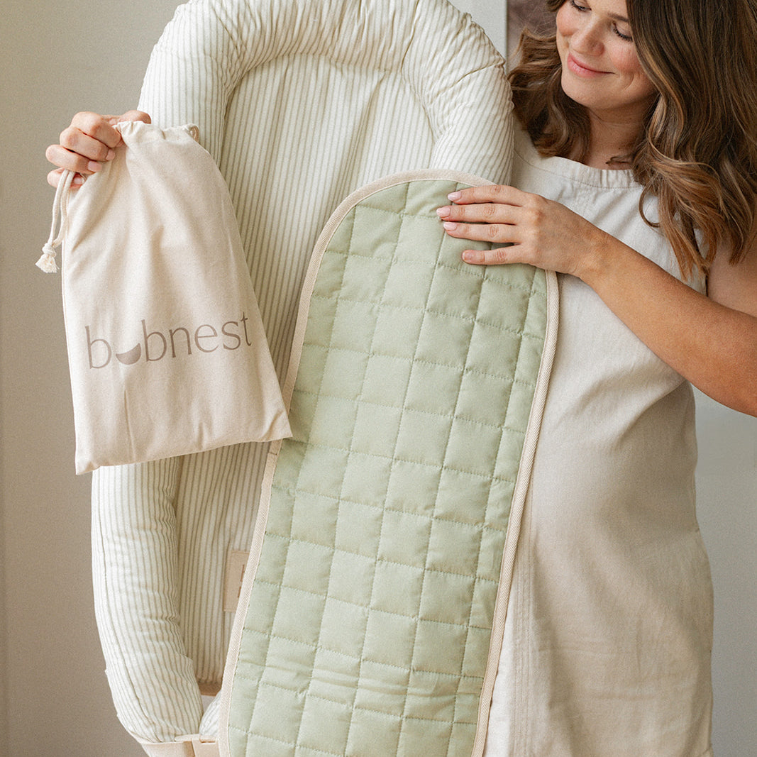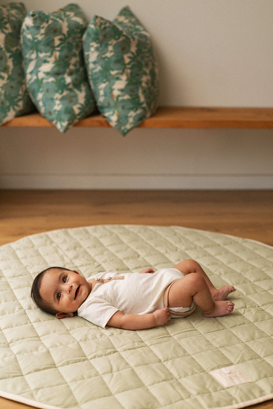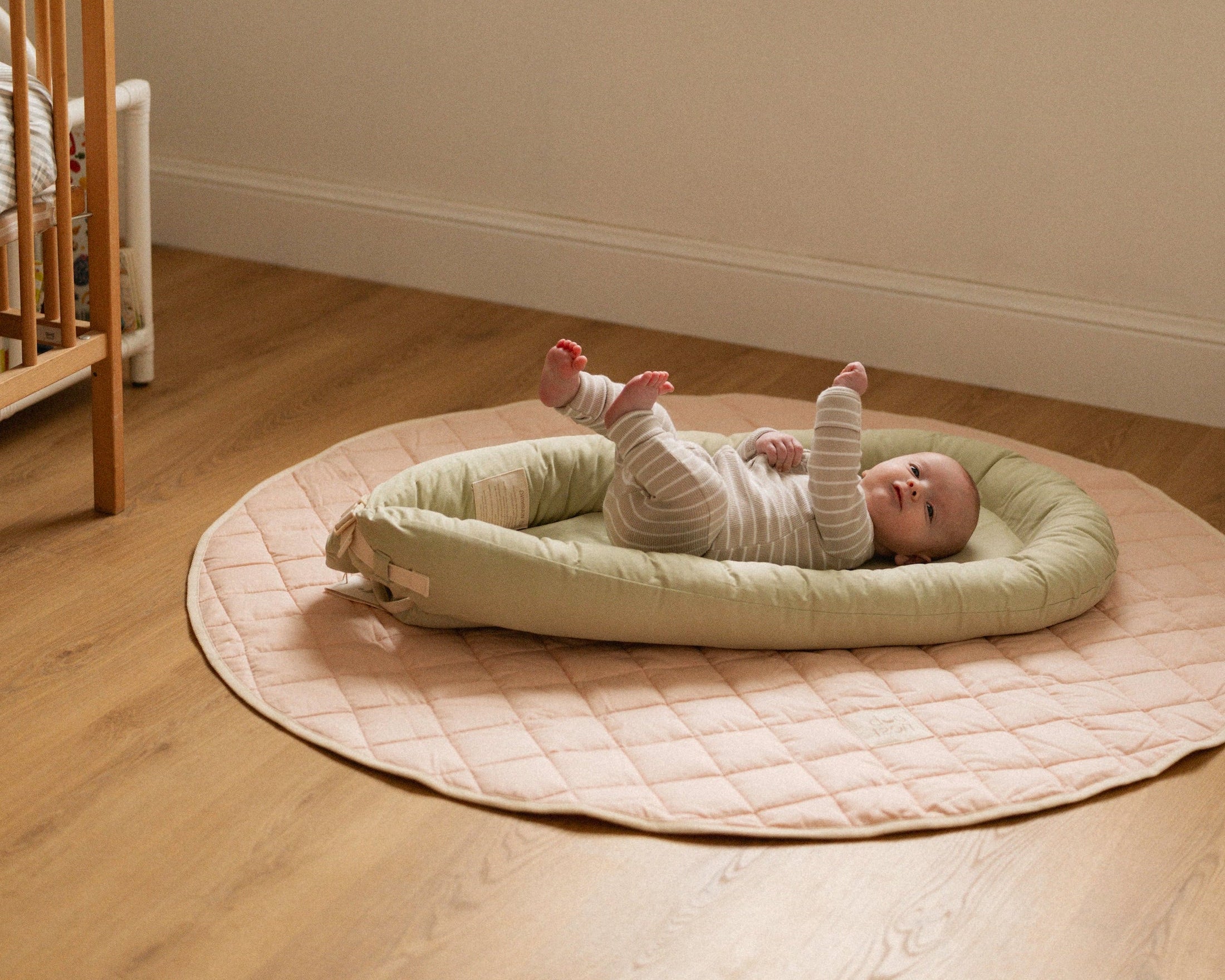 A soft, portable and familiar place for your little one to lounge, lay and play.