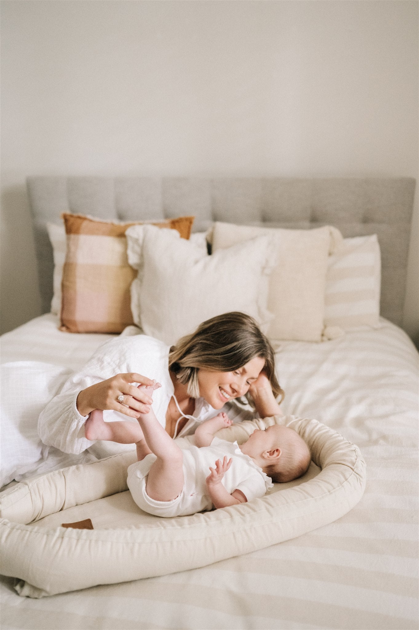 Our Baby Nests are not sleep products. They are lovingly designed for comfort, play, bonding, and supervised rest while your baby is awake. They are not made or intended for naps, co-sleeping, or any form of unsupervised or supervised sleep.