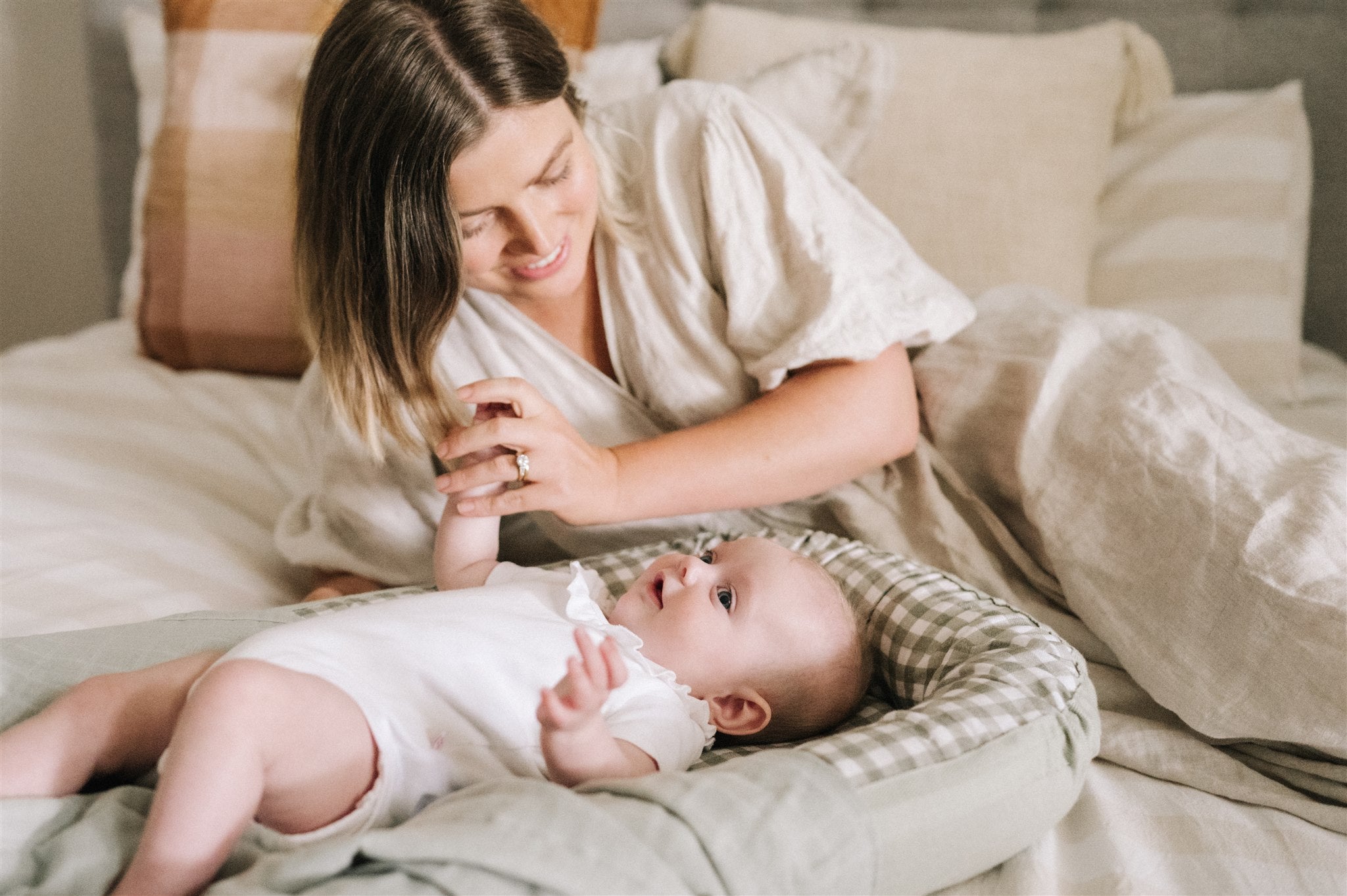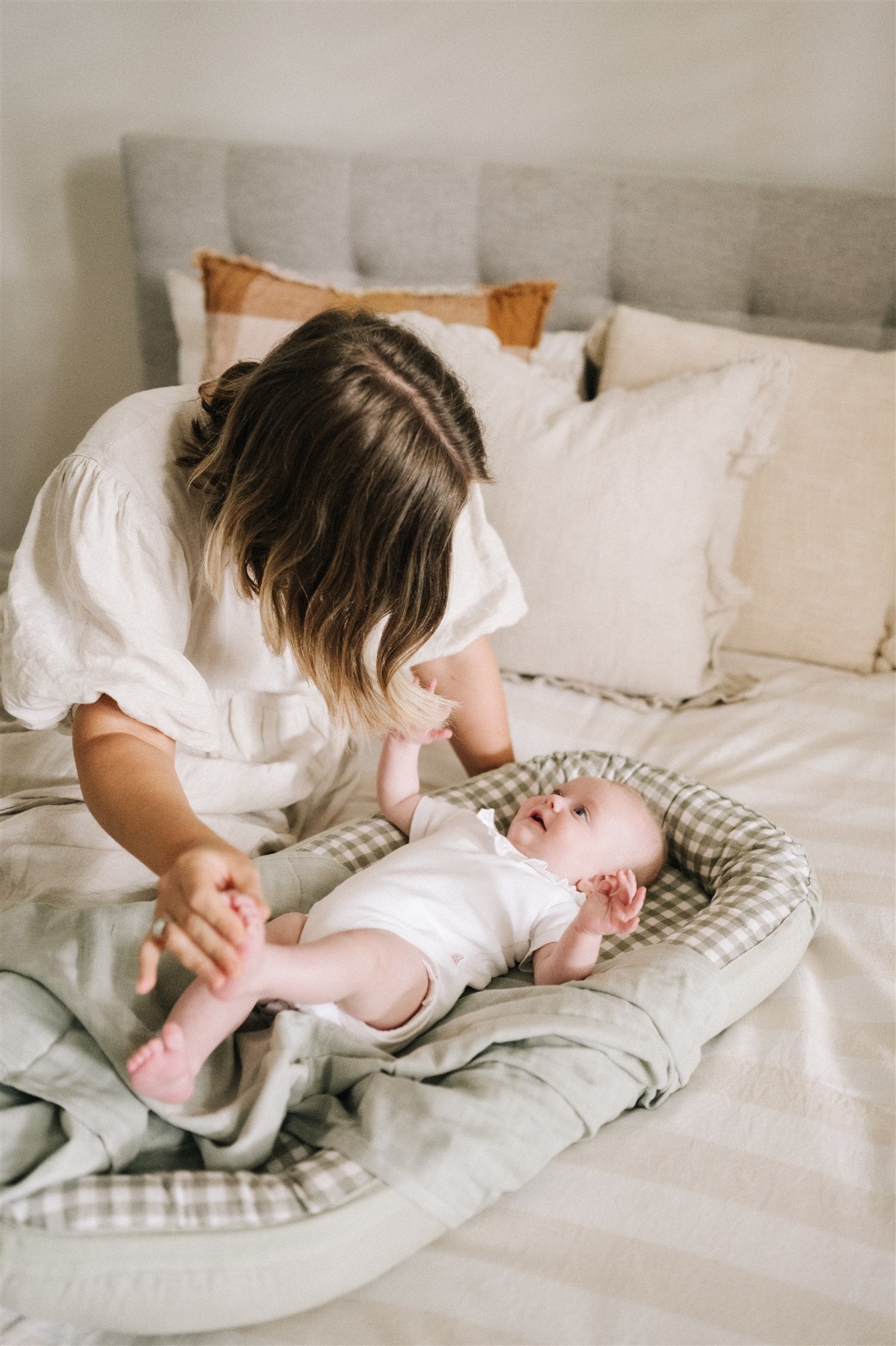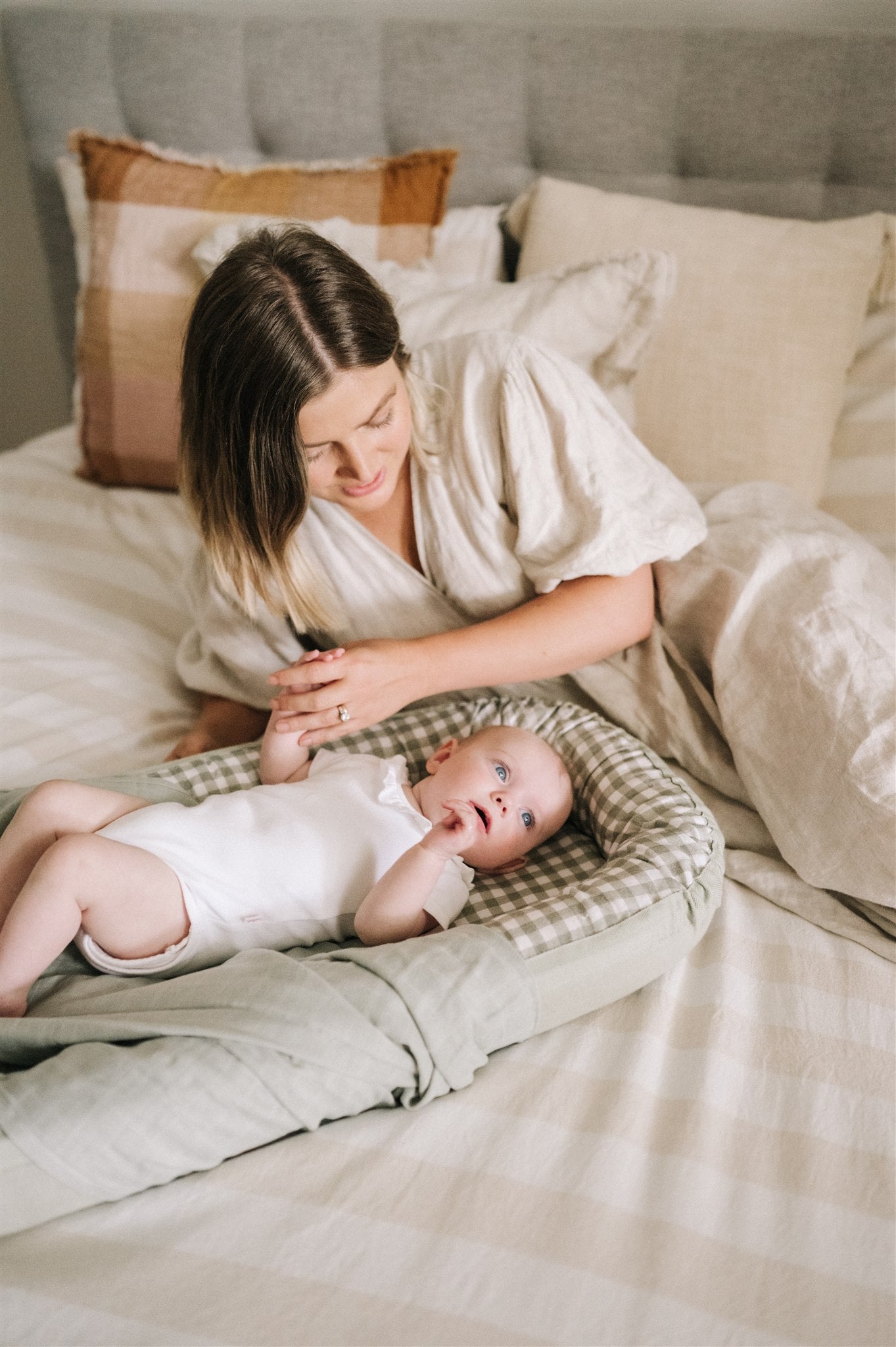Baby Nest in Sage + Cream Gingham