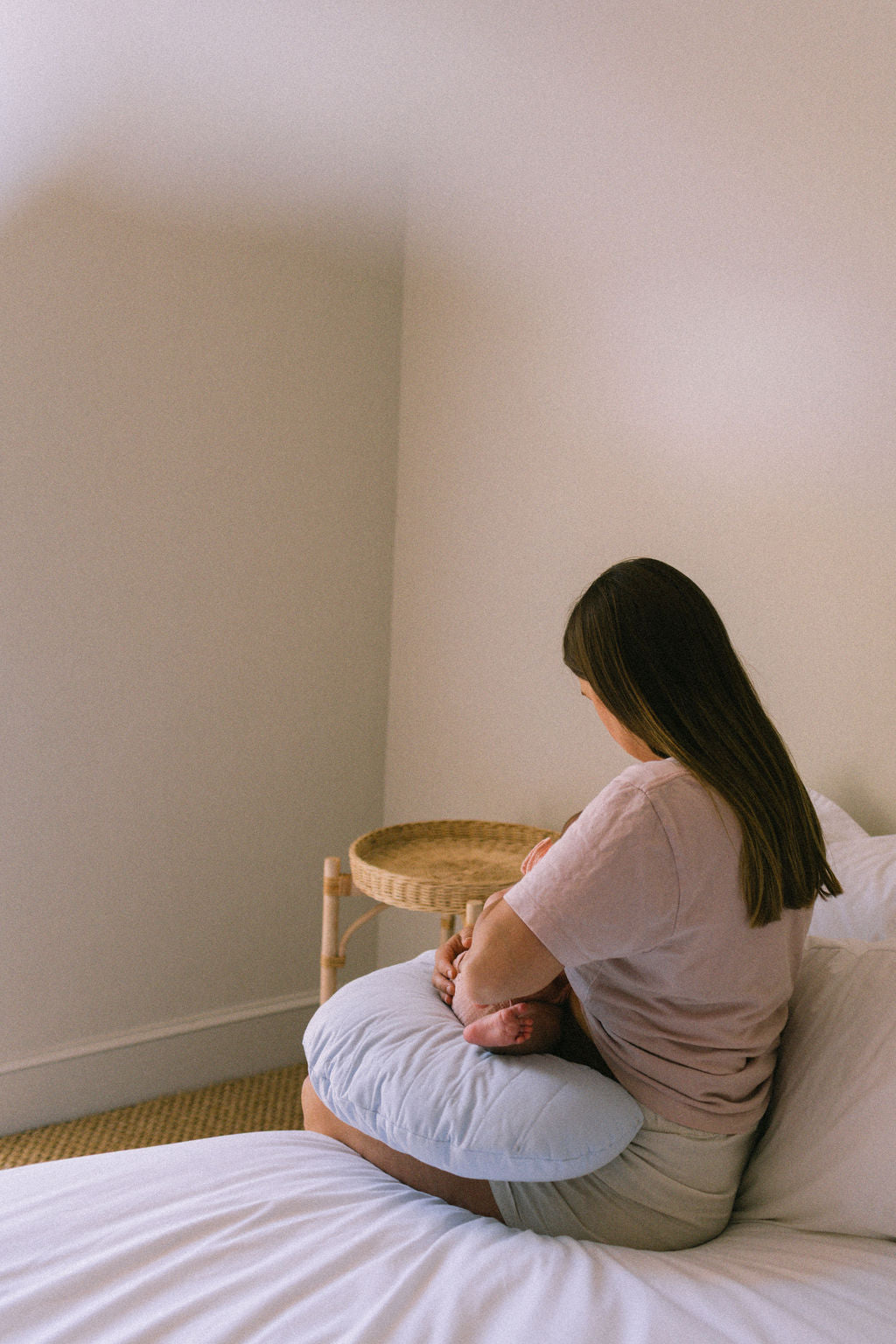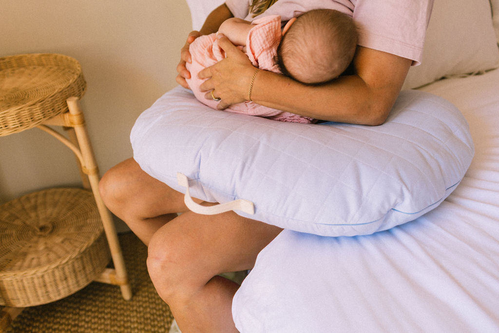 The Feeding Pillow provides soft, supportive comfort for you and your baby, helping every feed feel calm, connected and ergonomically supported.