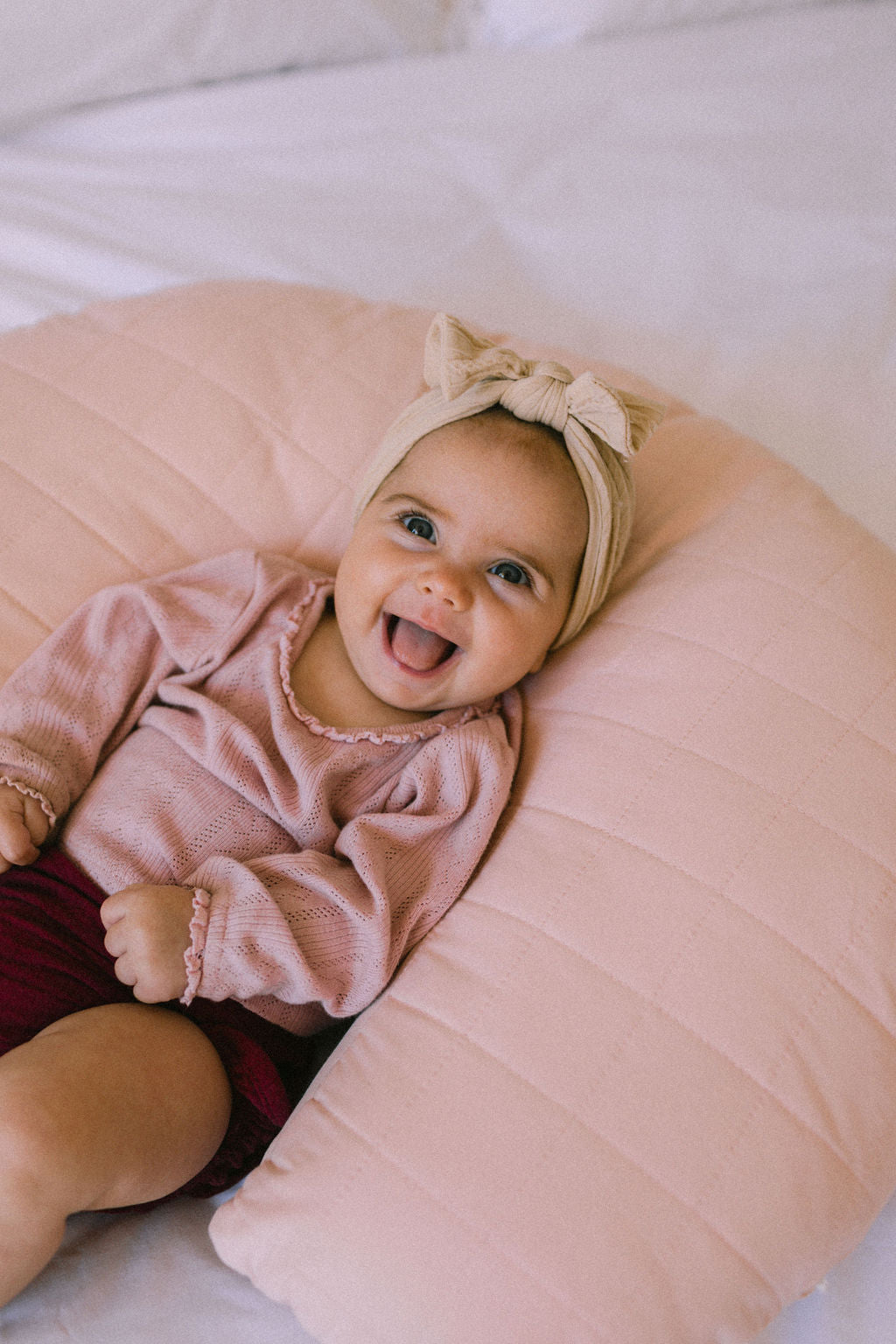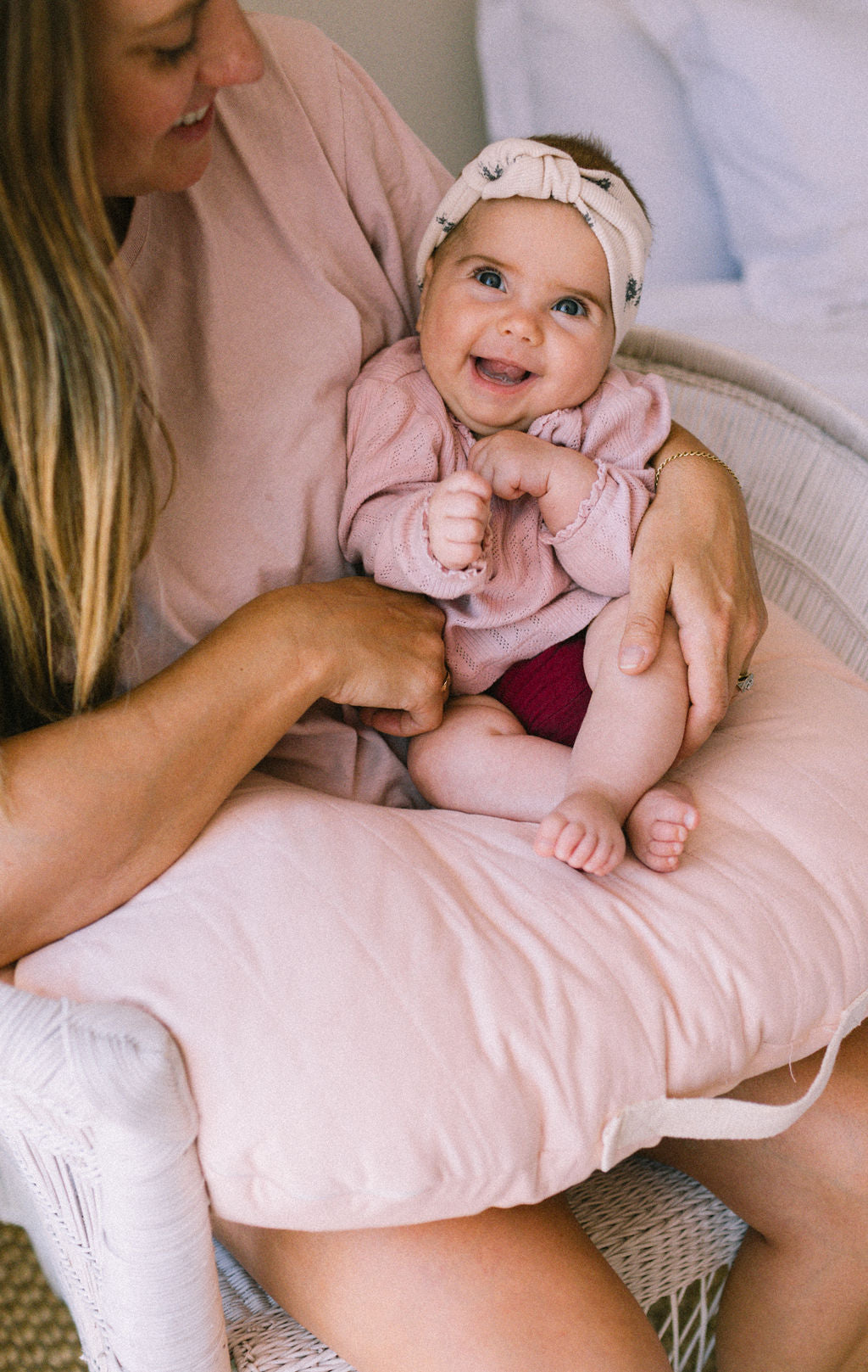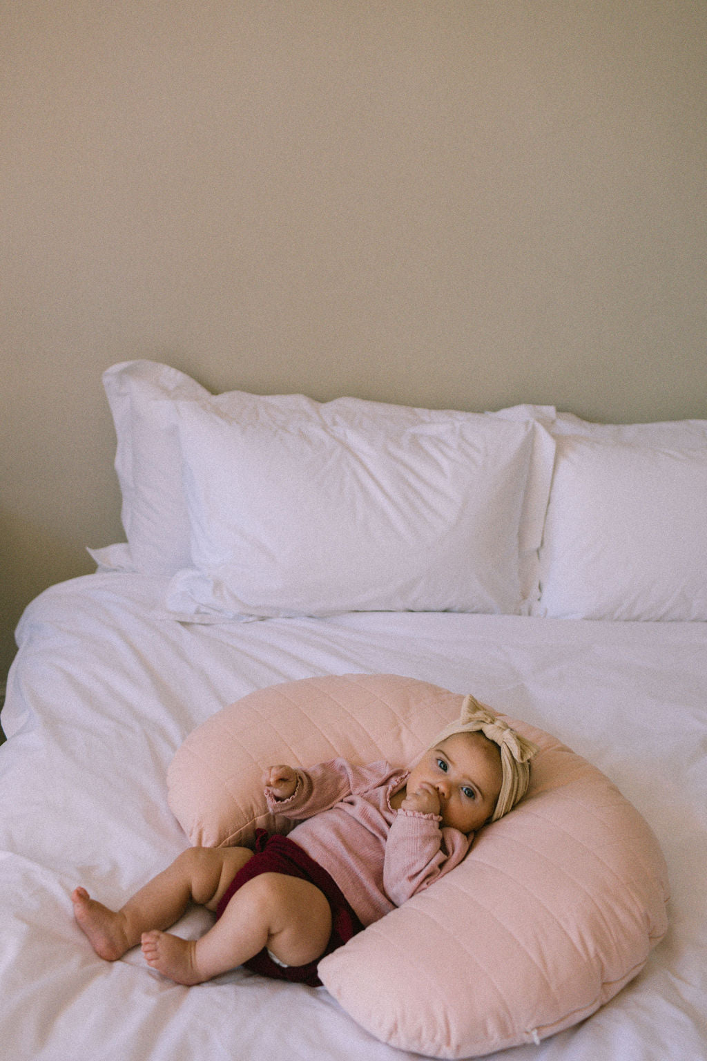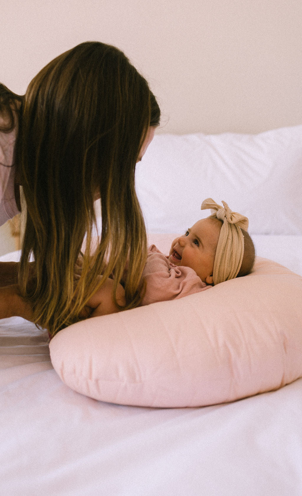 The Feeding Pillow provides soft, supportive comfort for you and your baby, helping every feed feel calm, connected and ergonomically supported.