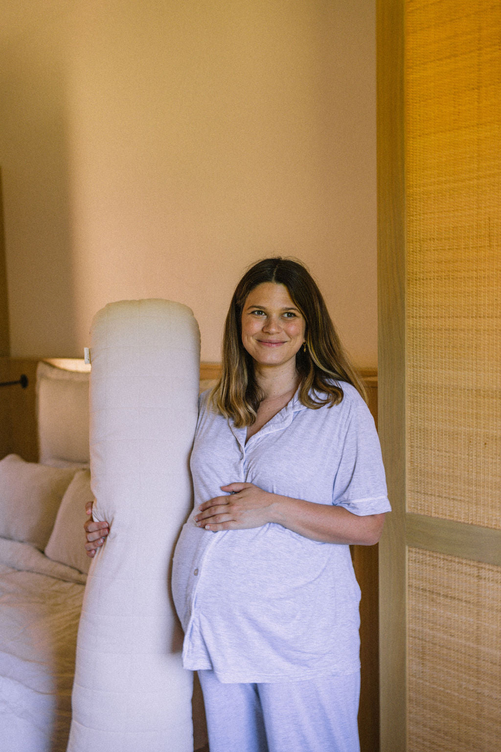 The Pregnancy Pillow provides soft, full-body organic support to ease pressure, improve sleep and bring comfort from pregnancy through to postpartum support.
