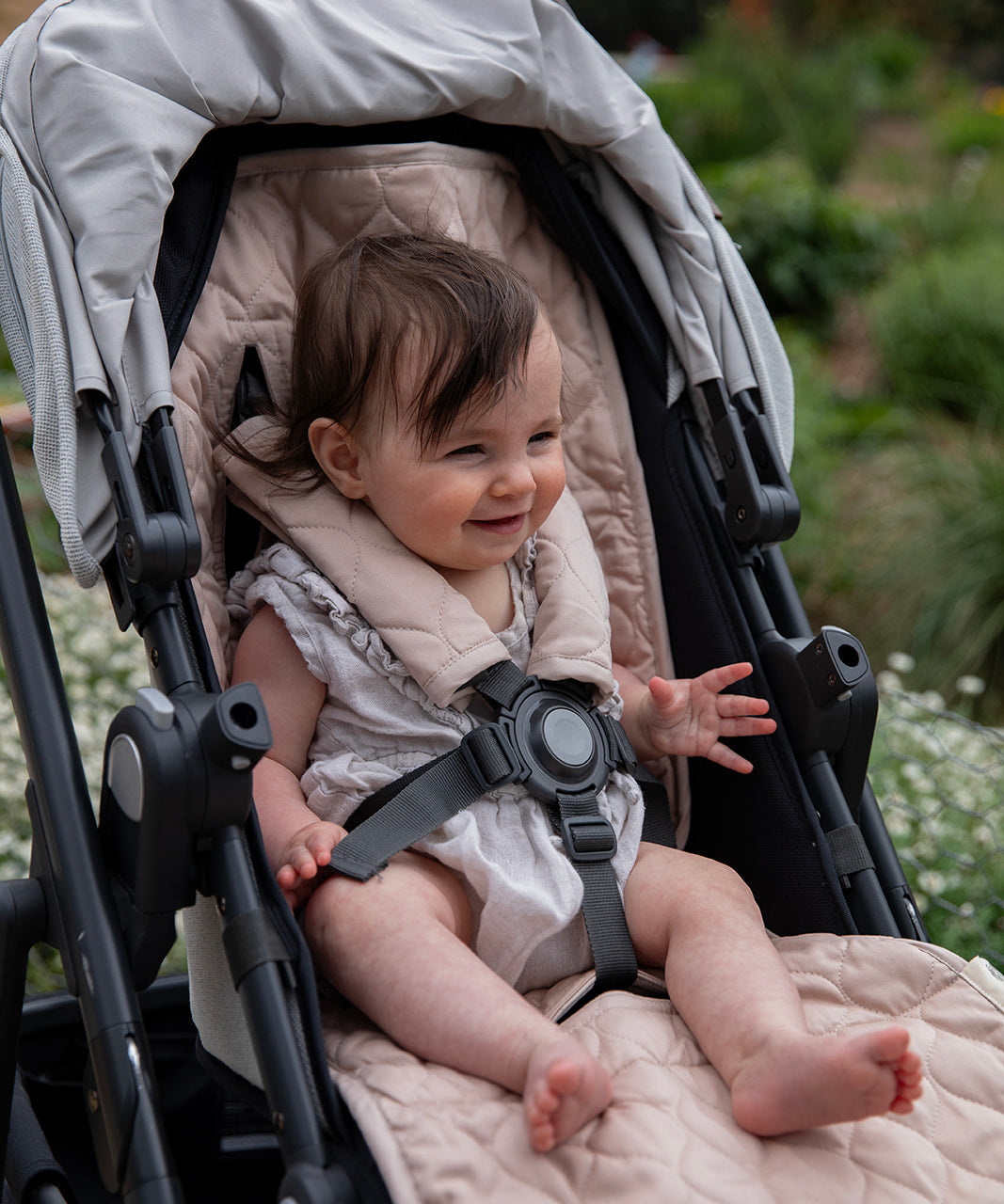 Our Pram Liner adds a layer of gentle comfort to your daily outings. Lightly cushioned and made from certified organic materials, it keeps your baby supported and your pram protected.