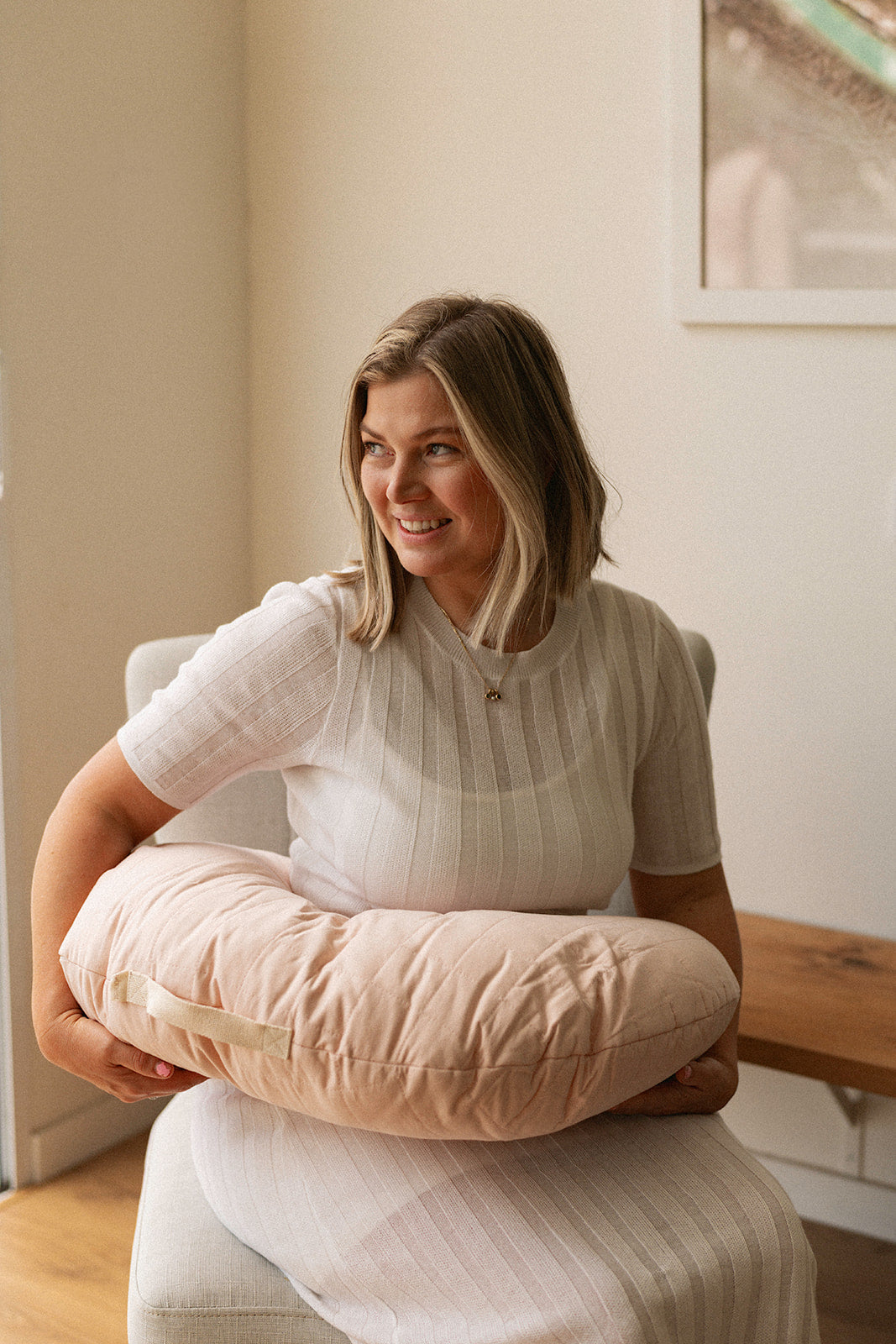 The Feeding Pillow provides soft, supportive comfort for you and your baby, helping every feed feel calm, connected and ergonomically supported.