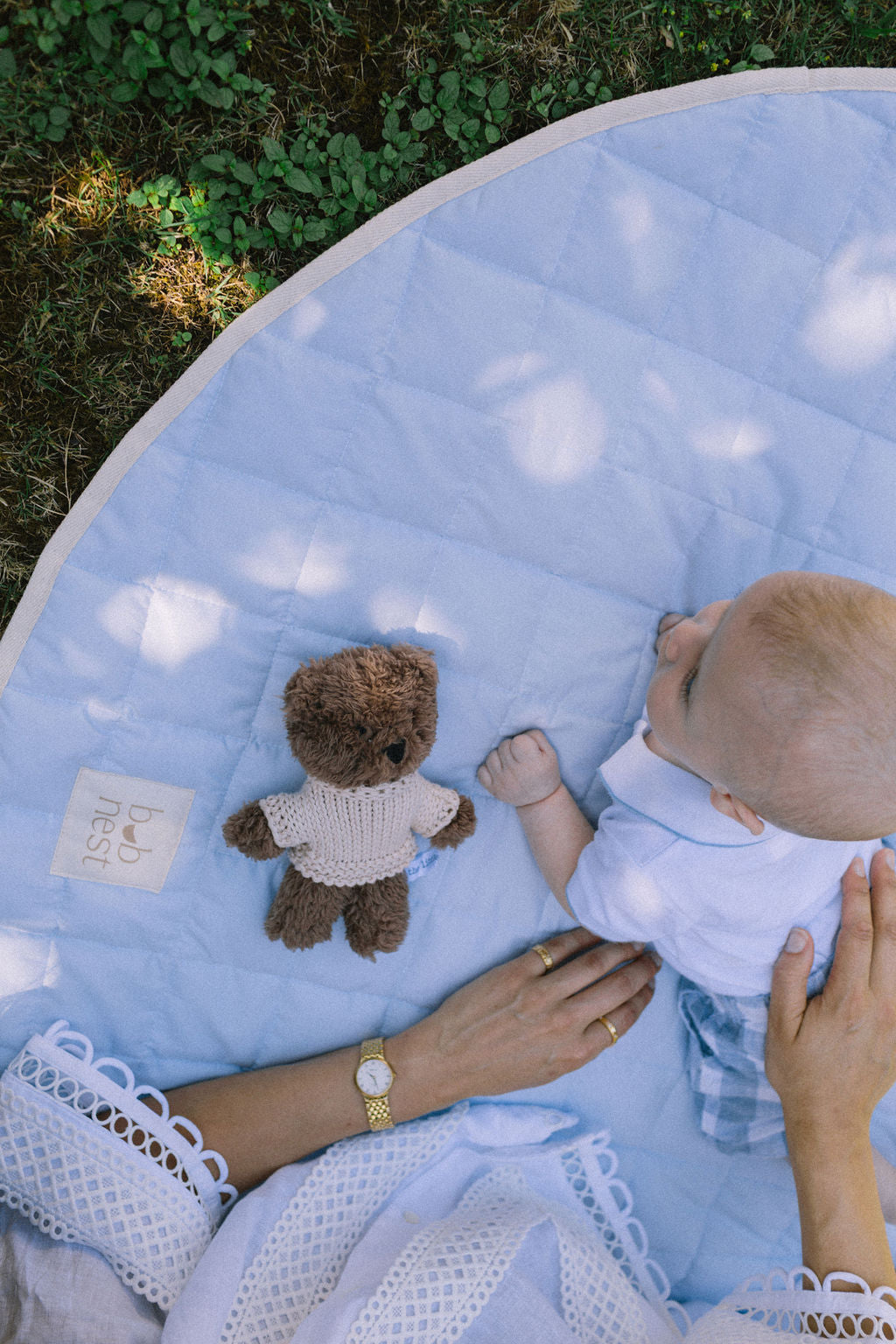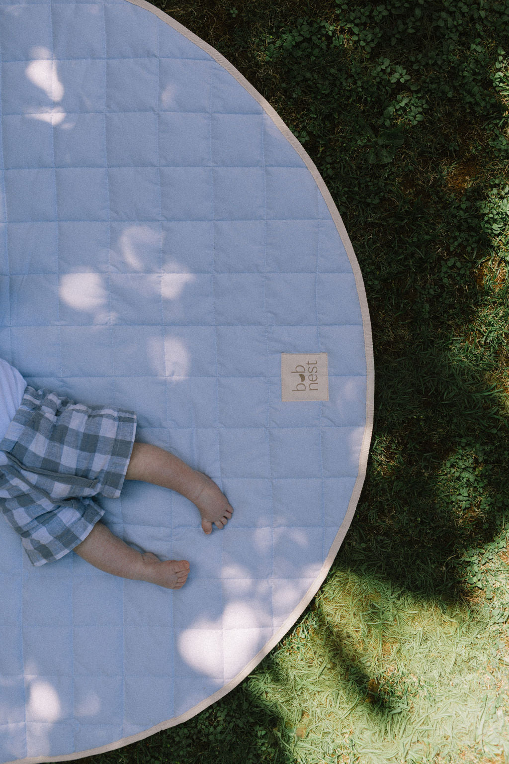 A soft landing for big milestones. The Playmat creates a clean, cushioned space for everyday bonding, early development and all those little in-between moments. Designed for comfort, easy care and portability.