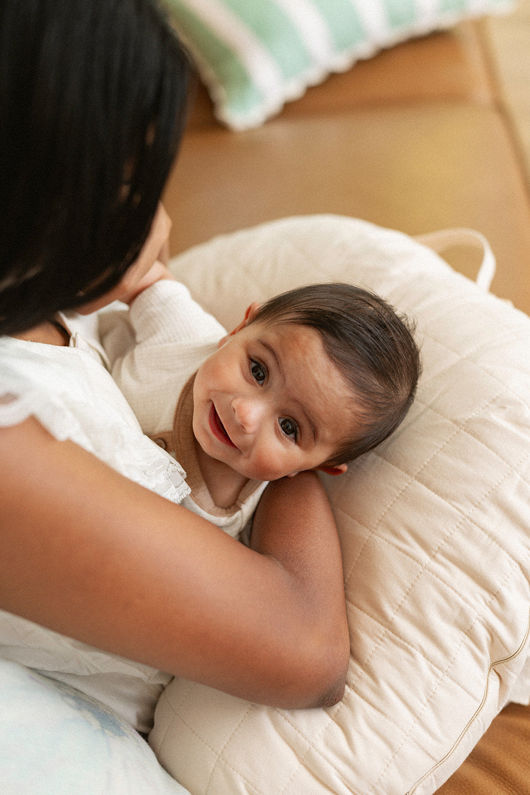 The Feeding Pillow provides soft, supportive comfort for you and your baby, helping every feed feel calm, connected and ergonomically supported.