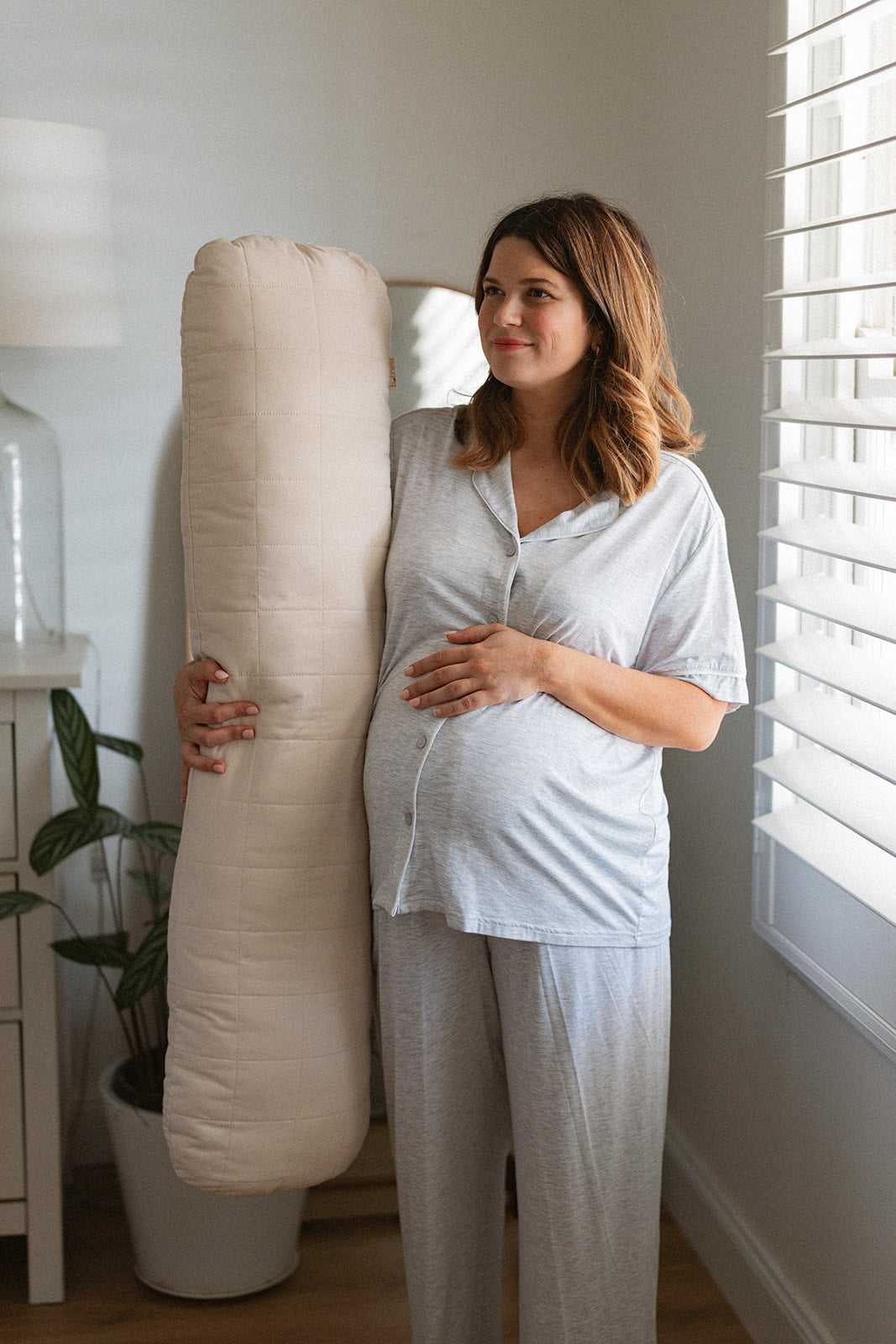 The Pregnancy Pillow provides soft, full-body organic support to ease pressure, improve sleep and bring comfort from pregnancy through to postpartum support.