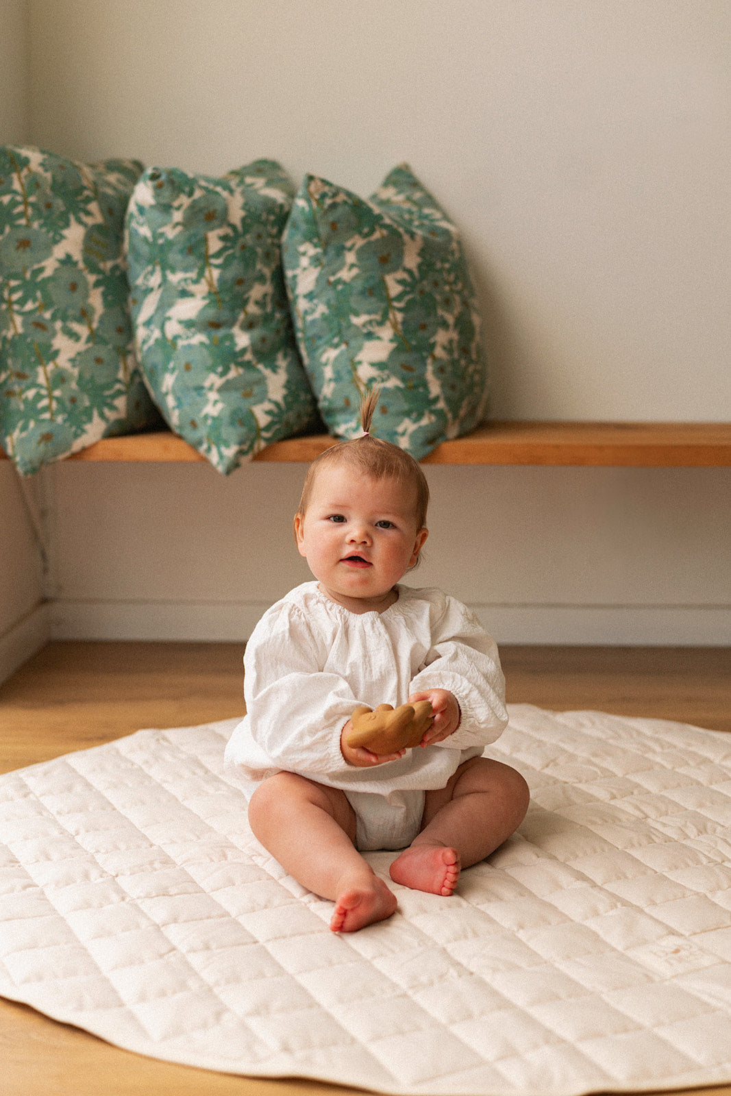 From tummy time to first adventures, our organic cotton Playmat provides a soft, supportive base for your little one’s daily discovery. Crafted from GOTS-certified organic cotton and filled with Oeko-Tex Standard 100 wadding, it’s free from harmful chemicals inside and out, making it gentle on even the most sensitive skin. The generously sized 120cm diameter and light quilting offer a cushioned, comfortable space for bonding, early development and all the in-between moments. Designed to move effortlessly with you, it’s fully machine washable and easy to carry from the nursery to the living room and beyond. Practical, beautiful and thoughtfully made, it’s the soft landing every milestone deserves.