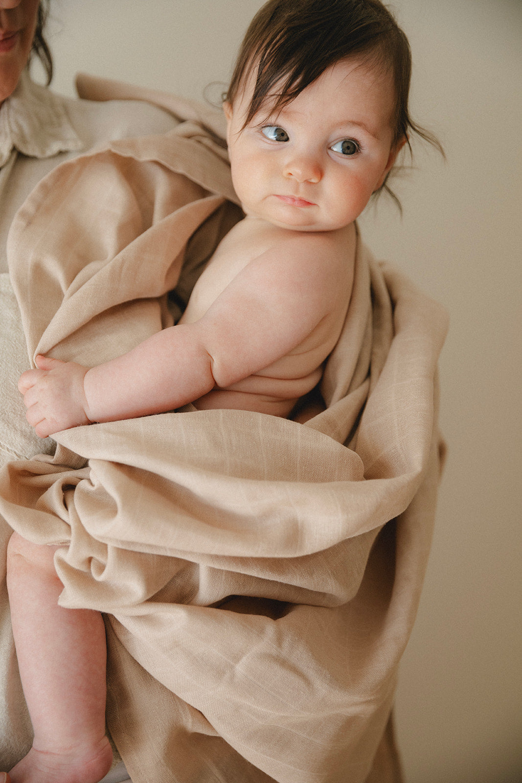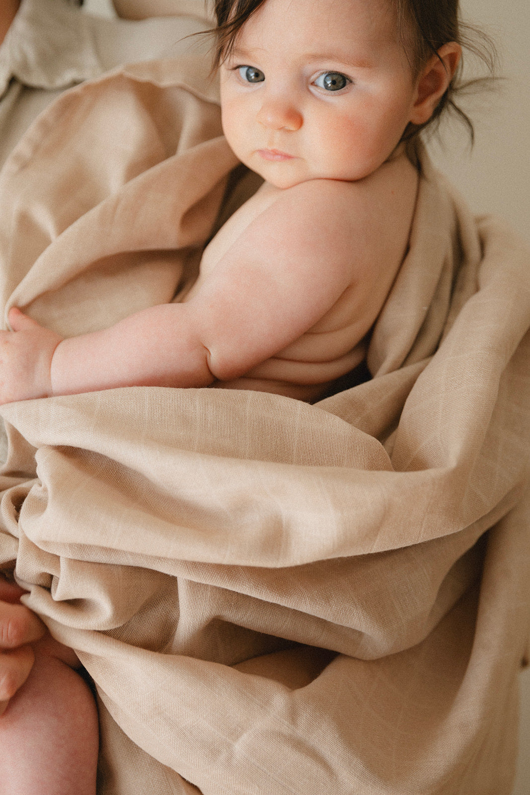 Lightweight, breathable and beautifully soft, our Swaddle is a newborn essential — made to gently wrap your baby in comfort and calm. Crafted from GOTS-certified organic cotton muslin, it’s as versatile as it is soothing.