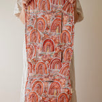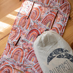 “This artwork (‘Wajunbihn Nunguhny’ Mothers Love) acknowledges the traditional owners of this land, sea and sky. It pays respect to our Elders of the past and present for their strength, knowledge and leadership and to our jarjum’s (children), who are our future Elders. This artwork celebrates the thousands of years and over 1000 generations, of babies born and welcomed onto country, in nature, with the guidance and support of women as part of ceremonial and sacred practices of Women’s Business. The shapes and detailed patterns represent sandhills and the Country, symbolising the baby’s connection to the land. The warm natural colours symbolise the ochre and colours of the land” - Holly Sanders